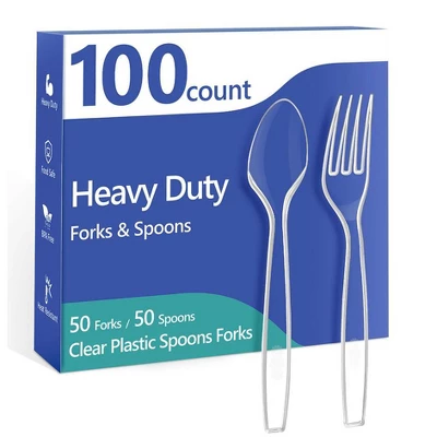 Discover this fantastic 100 – count plastic silverware set! Crafted from high – quality food – grade plastic, it’s BPA – free, ensuring a healthy dining experience. The spoons and forks are thick and sturdy, resistant to breaking and bending. They can handle high temperatures, so you can use them for both hot and cold foods without any concerns. The transparent design is a great match for any decor, providing an elegant look. With 50 forks and 50 spoons in the pack, it’s perfect for all occasions, whether it’s a family dinner at home, a birthday party, or a camping trip. Using these disposable utensils saves you the hassle of washing, making your life easier and more convenient. Say goodbye to the chore of dish – washing and enjoy a stress – free dining experience with this excellent plastic cutlery set.