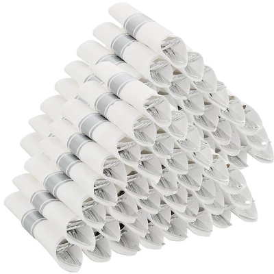 Looking for a practical and elegant disposable cutlery set for your next big event? Our 100 – pack pre – rolled silver plastic silverware set with napkins is the answer. Crafted from high – quality food – grade, BPA – free materials, it ensures safety and comes in hygienic dust – free packaging. The set is thickened during production, making it sturdy and less likely to break. It includes 100 forks, 100 spoons, 100 knives, and 100 napkins, enough to serve up to 100 guests. Whether it’s a wedding, birthday party, or family gathering, these utensils with their metallic luster will bring an elegant touch to your event. You can use them once and dispose of them, or wash and reuse multiple times, saving you the hassle of post – event dishwashing. Make your parties unforgettable with this complete and convenient tableware set.