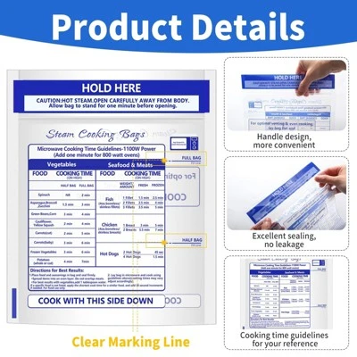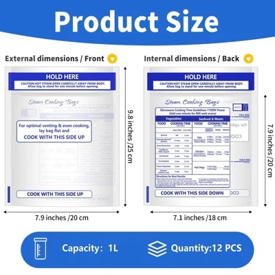 Discover the ultimate cooking companion – our microwave steam bags! You’ll get 12 reusable bags, offering various quantity choices to fit your long – term cooking plans. Made from high – quality materials, they’re durable, non – breakable, and can withstand high temperatures, ensuring that your food’s flavor and nutrition are perfectly retained. Each bag features a clear cooking time guide for different foods, allowing you to cook delicious meals with ease. Whether you’re steaming fresh or frozen vegetables, potatoes, asparagus, or fish, these bags are up to the task. They’re not just convenient; they’re also a great tool for those concerned about their weight and health, as they help reduce excess fat and sugar in your diet. Moreover, their reusable design makes them an eco – friendly and economical option for your kitchen. Upgrade your cooking experience today with these amazing microwave steam bags!