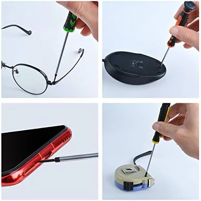 Discover this 12 – piece small screwdriver set, perfect for iPhone, PC, laptop, eyeglass, jewelry, and watch repairs. The set features flathead, Phillips, and Pentalobe screwdrivers in different sizes, along with a helper stick, tweezers, and a magnetizer & demagnetizer tool. Crafted from stainless steel, the screwdrivers are strong and durable, while the non – slip PP+PVC handles ensure a comfortable grip. The magnetic function makes it easy to handle screws, and the blackening treatment prevents rust. The 360°rotating cap saves effort, and the color – coded screwdrivers are easy to identify. Whether you’re a professional repairer or a DIY enthusiast, this set is a must – have for all small – scale repair jobs, offering a comprehensive and efficient solution.