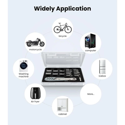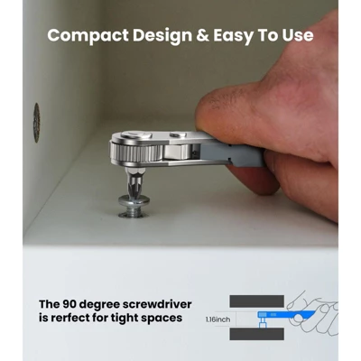 Discover this 17 – in – 1 right – angle ratcheting screwdriver set. Its unique 90 – degree right – angle design enables it to access tight spaces, perfect for electronic device maintenance. With torque amplification, you can apply force more upright, reducing wrist fatigue. The precision bits are crafted from Bearing Steel, with a hardness over HRC65°, resistant to wear and corrosion. The magnetized tip easily picks up and holds tiny screws. The ergonomic handle, featuring non – slip textures and soft rubber, ensures a comfortable grip for extended use. This screwdriver is highly versatile, applicable in household repairs like furniture and appliances, as well as professional areas such as mobile car repair, boat and bicycle maintenance. It’s not only a practical tool but also comes in elegant packaging, making it a great gift for DIY enthusiasts and professionals alike.
