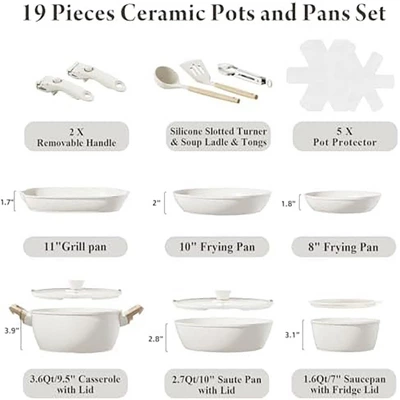 Upgrade your kitchen with this 19 – piece non – stick ceramic cookware set. Made from natural ceramic, it’s free of harmful substances like PFAS, PTFE, PFOA, lead, and cadmium, making it a safe choice for families. The non – stick coating offers excellent performance with low to medium heat, requiring minimal oil for cooking. Cleaning is a breeze with just a quick rinse or wipe. It provides consistent heat distribution, ensuring your food cooks evenly. The set comes with various pans, 4 utensils, a steamer, and 6 protection pads, suitable for family dinners or party meals for 4 – 7 people. It’s induction – compatible, dishwasher and oven – safe, and has removable handles, making it versatile for different cooking needs and even suitable for RVs. Enjoy the convenience and safety this cookware set brings to your kitchen.