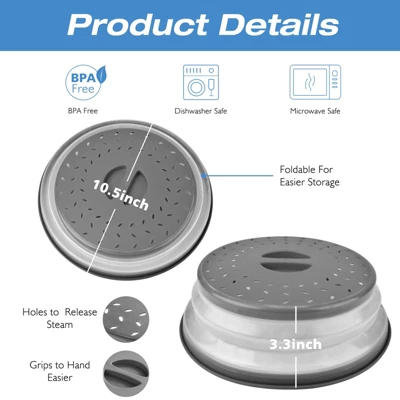 Upgrade your kitchen with this set of 2 collapsible microwave covers. These covers are made of BPA – free plastic and silicone, ensuring safety and durability. The perforated design is a game – changer, protecting your microwave from grease splatters while allowing steam to escape for even heating of your dishes. The heat – resistant material can handle high temperatures up to 300 F, so you can use them with confidence. The easy – grip handle on the pop – up lid makes it convenient to use, and it won’t burn your hands. They can be stretched to fit various large bowls, plates, and dishes, and when not in use, they fold down for easy storage. And with their dishwasher – safe feature, cleaning is a snap. Whether you’re reheating leftovers or cooking a quick meal in the microwave, these covers are the perfect kitchen companion, bringing convenience to your daily life.
