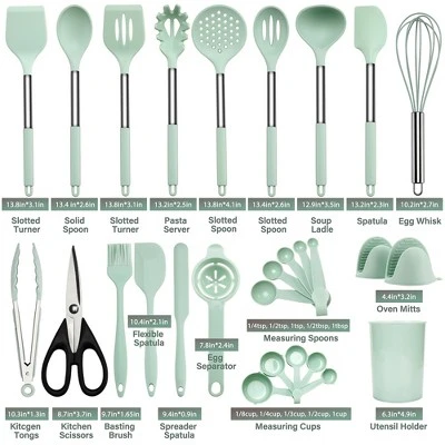 Upgrade your kitchen with this 28 – piece silicone cooking utensils set. Crafted from food – grade silicone and high – quality stainless steel, these utensils are lightweight, durable, and heat – resistant up to 446°F/230°C. They won’t melt when used directly in the pan and prevent food from sticking, extending the life of your cookware. Cleaning is a breeze; simply wipe with hot water or use the dishwasher. The set comes with a variety of utensils carefully chosen for different kitchen tasks, from serving soup to separating eggs. It’s perfect for daily cooking, as well as special occasions. Moreover, it makes a creative gift for friends and family on various occasions. Get this set and make your cooking more enjoyable and efficient.