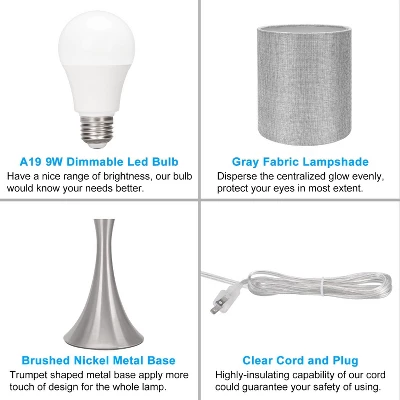 Discover this 3 – way touch control table lamp, a perfect addition to your home. With a solid metal base and a gray fabric shade, it offers a modern and stylish look that fits well with contemporary or minimalist decor. The 3 – way dimmable function is incredibly user – friendly. Just tap the base to adjust the brightness to low, medium, or high, which is especially convenient when you don’t want to get up in the middle of the night. It’s suitable for multiple settings like bedrooms, living rooms, offices, or dens. The high – quality metal construction ensures stability, so it won’t be easily knocked over. And with an A19 3000K LED bulb included in the package, you can quickly assemble it and start enjoying the perfect lighting right away. It’s not only a practical lighting solution but also a great gift choice for any occasion.