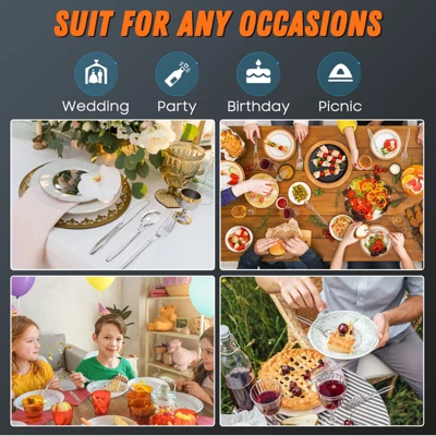 Discover this amazing 360 – count plastic silverware set! Crafted from heavy – weight food – grade polystyrene, it’s BPA – free and toxin – free, guaranteeing a healthy choice for your meals. The edge – thickened design makes it highly durable, perfect for all kinds of food. Its upgraded material offers great heat resistance, allowing you to use it for both hot and cold dishes. The set contains 120 forks, 120 spoons, and 120 knives, enough for large gatherings. With smooth edges, it won’t scratch your skin and is easy to handle. Whether it’s a wedding, picnic, or party, this cutlery set is a must – have, bringing ultimate convenience to your event preparation and cleanup.