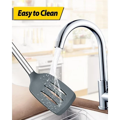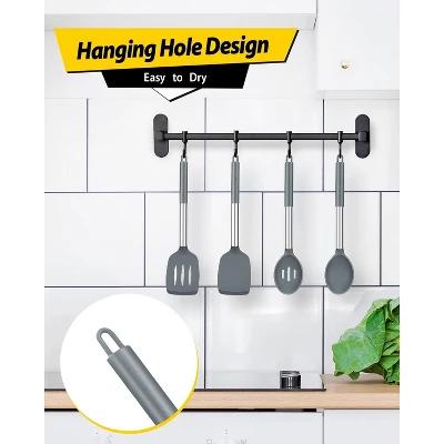Discover this pack of 4 silicone cooking utensils. Made of food – grade silicone and 18/8 stainless steel, they are BPA – free and safe for your kitchen. The silicone part won’t scratch your pots and can withstand high temperatures without deforming. The 18/8 stainless – steel ensures no rust or breakage, and the anti – scald silicone handle offers a comfortable grip. They are incredibly easy to clean; just wipe with hot water after use. With a round hanging hole, storage is a breeze. Each utensil serves a unique purpose. The turner with its thin and flexible edge is perfect for flipping food, the large – capacity spoon helps in holding food, and the slotted spoon quickly drains water. Ideal for multiple cooking tasks such as frying, mixing, and serving, these utensils will make your cooking experience more enjoyable and efficient.