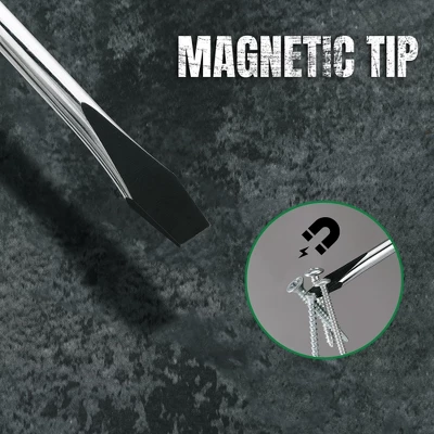 Upgrade your toolkit with this 6 – piece screwdriver set. The screwdriver shafts are made of heat – treated S2 steel, superior in impact strength to most CR – V steels and plated with chrome for extra hardness. It’s a great choice for professional work. The magnetic tip securely holds screws, preventing them from dropping, and the black oxide process enhances durability. There are 3 flat – head and 3 Phillips screwdrivers with clear size markings on the handle for easy selection. The SureGrip handle with a knurled and triangular grip texture allows for large – torque applications, enabling you to work with speed and precision. Whether you’re assembling furniture, doing DIY projects, or working on professional tasks, this set provides efficient and precise operations. With a wide variety of hand – tool options, it meets the needs of professionals in different fields.