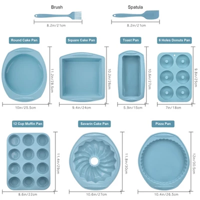 Discover this 9 – in – 1 baking set! Crafted from high – quality food – grade silicone, it’s flexible, durable and non – stick. With heat resistance from – 40 to +446℉ (- 40 to +230℃), it’s suitable for various appliances like ovens, microwaves, and dishwashers. The set includes 9 pieces, such as a donut pan, toast pan, and more, along with a bonus brush and spatula. It’s perfect for baking all kinds of treats, from muffins to pizza, and is great for special occasions. To use, simply oil the cavities, fill with batter, and avoid uneven – temperature areas in the oven. After baking, cleaning is a breeze. This set brings convenience to your baking and allows you to enjoy delicious and healthy desserts with family and friends.
