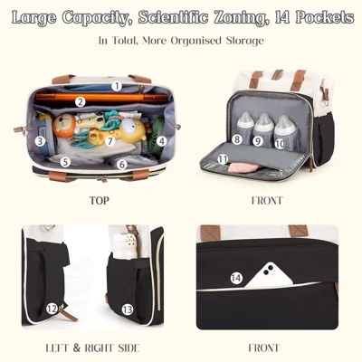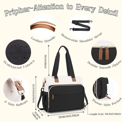 - Attention to Details: Features double smooth zippers, leather handles, 2 side buttons, a detachable shoulder strap, tissue and wet wipes side pockets, insulation pockets, and waterproof compartments, providing a great shopping experience.