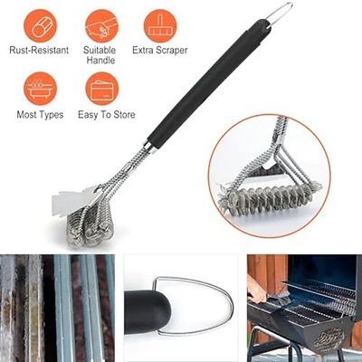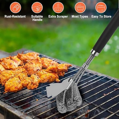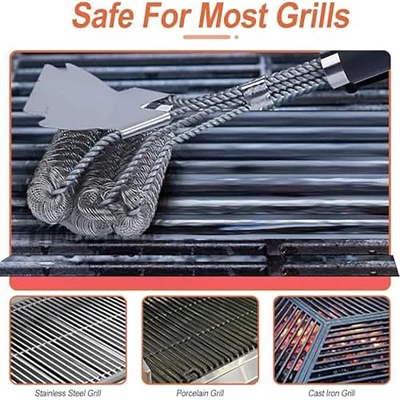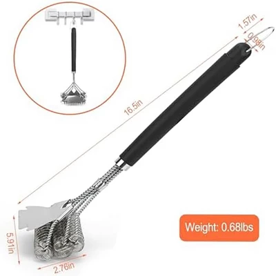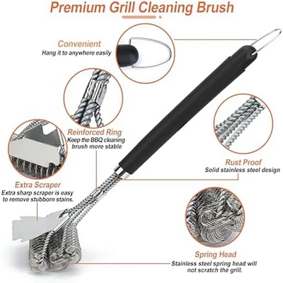 Upgrade your barbecue cleaning routine with this grill brush with scraper. Made of high – quality stainless steel and a PP handle, it’s built to last and resist rust. The 16.5 – in handle provides a comfortable grip, allowing you to clean hard – to – reach areas without getting burned. The unique design includes 3 rows of brush heads and an internal scraper. The stainless steel spring head cleans the grill from all angles without scratching it. After use, simply rinse it with dish soap under water and hang it to dry. It can be stored in a box or hung up for easy access. This grill cleaner is suitable for a wide range of barbecue grills, including those made of porcelain, cast iron, and ceramic, whether they’re square or rectangular. Say goodbye to stubborn stains and hello to a clean grill with this essential barbecue tool.