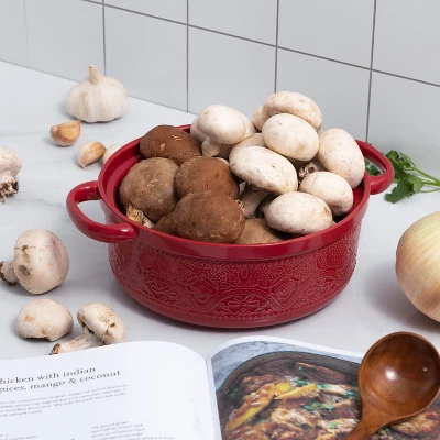 Discover this exquisite 2 – quart casserole dish! Inspired by 19th – century lace patterns, it comes in classic red, blue, and white colors, looking like a true work of art. The dish uses a Clare glaze, 30% brighter than traditional ones, which is lead – free and non – toxic. It’s made with 20% more clay and has 3/8″ thick walls, ensuring sturdiness and even heat distribution while keeping food warm. Ideal for a 2 – 3 – person dinner at home or for bringing to social parties, it can go from the oven to the table directly. However, note that it can’t be used on fire, stove, or induction cooker. Add this elegant casserole dish to your kitchen and elevate your dining experience.