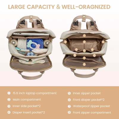 - Comes with a 15.6 – inch laptop compartment and an 11 – inch Pad pocket, providing storage space for parents’ electronics.