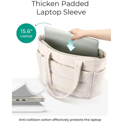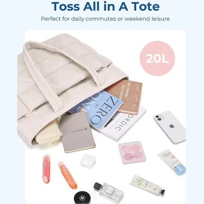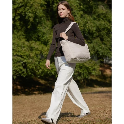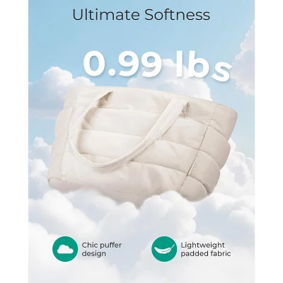 Discover the ultimate tote bag that combines style and functionality. This trendy puffer tote is a fashion statement, effortlessly complementing various outfits. It comes in two sizes: the standard one measures 16.1”L x 6.1”W x 12.2”H and the slim size is 13.2”L x 5.1”W x 15.7”H, with a 20L capacity to hold all your daily essentials like 15.6” laptops, umbrellas, and more. Weighing only 0.99 pounds and made of durable, soft taslan fabric, it’s incredibly lightweight and easy to carry. The zipper closure design keeps your belongings safe. It’s extremely versatile, serving as a work bag, laptop bag, gym bag, beach tote, casual shoulder bag, or travel bag, perfect for work, beach, travel, shopping, and gym. Upgrade your daily carry with this amazing tote!