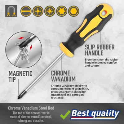 Discover a comprehensive screwdriver set that meets all your repair needs. This 43 – piece magnetic screwdriver set is a must – have for DIY enthusiasts and professionals alike. The screwdriver bars are crafted from 6150 chromium vanadium steel, offering superior strength and toughness compared to most carbon steel. With chromium plating, they resist corrosion and look great. The set includes 8 conventional screwdrivers, 6 precision screwdrivers, and 25 screwdriver bits in 5 different screw types. The magnetizer demagnetizer tool is a unique feature, allowing you to convert any tool blade into a magnetic retriever. Flexible socket extensions and a magnetic bit holder make it easy to work in tight or complex spaces. The ergonomic non – slip handle, made of pp + tpr materials, provides a comfortable and secure grip, and the 360 – degree rotation of precision screwdrivers ensures smooth operation. It comes with a dedicated storage box for easy transportation. Whether you’re working on electronics, computers, watches, jewelry, or anything with micro screws, this set has you covered, bringing convenience to your repair tasks.