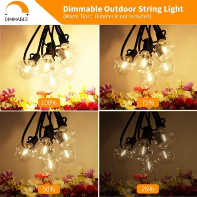 Enhance your outdoor living with these 200 FT outdoor string lights. Comes in 2 packs of 100 FT, equipped with 104 shatterproof plastic LED bulbs. These commercial – grade lights are ETL – certified, energy – saving with each bulb consuming only 1W and saving up to 90% on electricity. The waterproof design with fully – sealed sockets can handle harsh weather. They’re dimmable (dimmer not included) and pre – assembled, so you can simply plug them in and hang them up. Each bulb works independently, ensuring continuous illumination. The warm – white glow creates a cozy ambiance, perfect for patios, backyards, bistros, markets, and balconies. Ideal for outdoor gatherings, these lights instantly transform your outdoor space into a charming area for relaxation and entertainment.