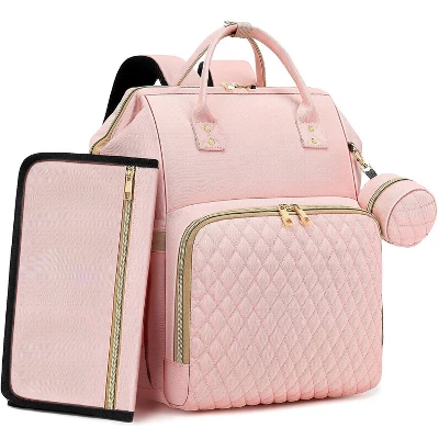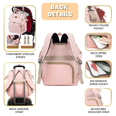 This pink diaper bag backpack is a must – have for baby girls’ parents. With a 35L large capacity and 16 well – organized pockets (measuring 16.5”x 9.4”x 14”), it can hold a 15.6” laptop, and has 3 insulated bottle holders and a wet/dry pocket. The unique back opening allows quick access to essentials. Made of waterproof 900D Oxford fabric and durable nylon lining, it weighs only 1.6 lbs and is built to last. It comes with a 23”x 13” foldable changing pad, a pacifier case, and stroller straps. You can use it as a backpack or attach it to luggage. Ideal for daily outings, work, or travel, it’s also a great baby shower or holiday gift for moms.