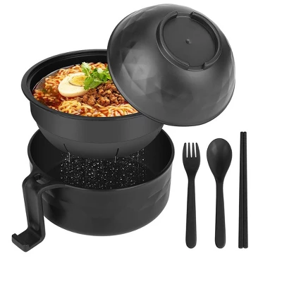 Discover this amazing ramen bowl set! With a 33 oz capacity, it’s a versatile all – in – one microwave solution. It can hold up to two packs of noodles, perfect for making instant ramen, soups, or pasta. The bowl is made from certified recycled wheat straw, which is odorless, climate – friendly, lightweight, and portable. Its unique side handle stays cool during use, allowing for safe and easy handling right from the microwave. Moreover, the handle doubles as a phone holder, so you can enjoy hands – free entertainment while having your meal. To use, simply place the draining bowl inside the large one, add noodles, pour boiling water, cover with the small bowl (which also serves as a lid), microwave, strain, and your delicious ramen is ready in minutes. This set is a must – have for students in college dorms, busy professionals in the office, or anyone looking for a quick and easy meal solution at home or while camping.