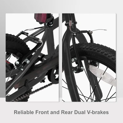 This kids’ bike is a great choice for boys and girls aged 5 – 10. Made of high – carbon steel, it features a durable step – over frame for easy on – off. The high – strength front fork and 20*1.95 inch tyres handle various terrains like rough roads and dirt. With steady wheels wrapped in rubber off – road tires, it offers excellent grip and stability in any weather. The front and rear dual aluminum V – brakes ensure effective and sensitive braking, enhancing safety. There are different sizes for different age groups. 85% of the bike is pre – assembled, and you just need to install a few parts with the included tools. Its retro style makes it unique and attractive, bringing convenience and fun to kids’ rides.