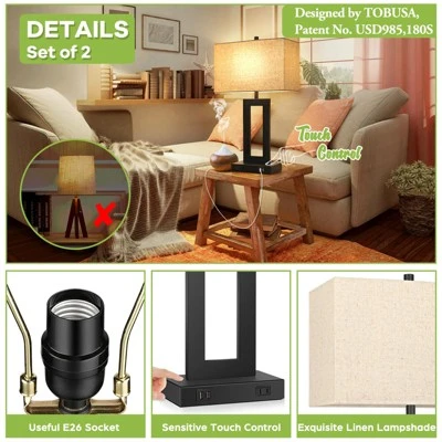 Discover this set of 2 touch – control table lamps that bring both style and functionality to your living space. With 3 – way touch control, you can easily adjust the brightness to low, medium, or high, meeting your different lighting needs whether at home or in the office. Just tap on the metal parts like the base, stem, or top finial to get your desired luminance. Each lamp is equipped with dual 5V/2.1A USB charging ports and a US standard 2 – prong AC outlet, allowing you to charge multiple electronic devices at once. The lamps are easy to assemble, taking only 4 steps. The premium cream lampshade and matte black finish create a sophisticated modern decor. It comes with 2 free A19 LED Edison bulbs that emit 2700K warm – white light at 800 lumen, consuming only 7W, which is both eye – caring and energy – saving. The lamps are made of sturdy metal with an anti – rust black finish, ensuring long – lasting use and easy cleaning. They are suitable for a variety of rooms, including the bedroom, living room, and nursery, adding a touch of style and convenience to your daily life.