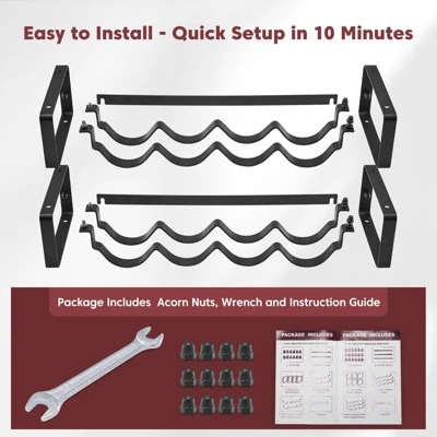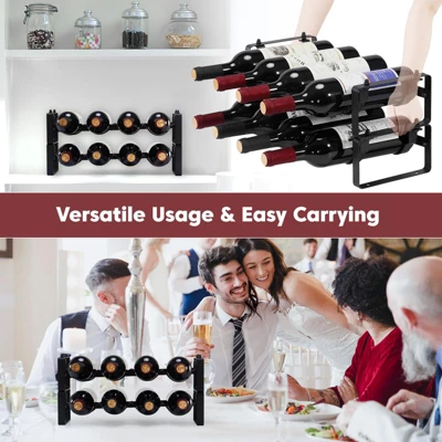 Upgrade your wine storage with this stackable wine rack. It’s crafted from 0.12 – inch thick high – quality iron and powder – coated for durability and good looks. This rack can hold 8 standard – size wine bottles or more. You can split it into 1 tier for low cabinets or stack additional racks. Installation is a breeze; just use the included wrench and follow the manual. It’s perfect for cabinet inserts in your kitchen, or as a tabletop rack in your basement or cellar. The specially – designed wavy shelves keep your bottles secure and the wine fresh by allowing for different tilt – angle installations. With its minimalist black design, it’s not only functional but also makes a great gift for wine lovers. Say goodbye to cluttered wine storage and enjoy a well – organized wine collection.