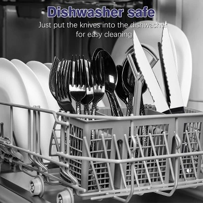 Upgrade your dining experience with this 16 – piece steak knife set. Each knife features a 4.5” serrated blade, allowing for precise and effortless cutting of a wide range of foods, from meats to vegetables. The triple rivet handles not only provide reliable strength but also offer a comfortable weight and balance for easy control. Crafted from food – safe stainless steel, these knives are rust and corrosion resistant, ensuring long – term durability. Their classic design fits seamlessly with your existing cutlery, while the ergonomic handles make them a pleasure to use. Whether it’s a family dinner at home, a catering event, or a special party, these multi – purpose knives are up to the task. And with their dishwasher – safe feature, cleaning is a breeze, saving you time and effort in the kitchen.