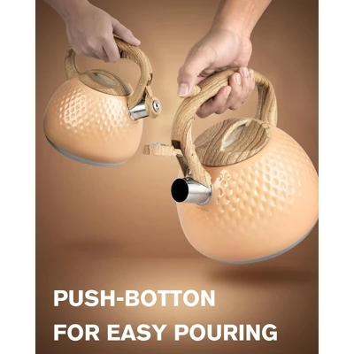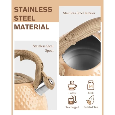 Discover this amazing stovetop tea kettle! It has a large 2.5 – quart capacity, ideal for social gatherings where you can serve tea to your friends. The kettle is made of high – quality stainless steel, which is anti – rust and anti – corrosion, ensuring long – term use. Its tight – fitting lid traps steam for rapid heating, and a loud whistle alerts you when the water boils. The silicone – coated, ergonomic handle is anti – hot and comes with a convenient button to control the spout. It’s suitable for multiple stovetop types, including induction, electric, gas, and natural gas. Just use it on low or medium heat, and it will heat up quickly, saving energy. In case of “rust” or scale inside, simply use lemon juice for cleaning. This tea kettle is not only practical but also a great gift for Father’s Day, bringing convenience to your daily tea – making routine.
