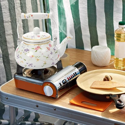 Discover this exquisite 2.6 – quart enamel tea kettle! Crafted from high – quality food – grade enamel, it’s healthy, non – toxic, and non – rusting. The ceramic handle is not only sturdy but also heat – insulated, providing a comfortable grip and easy pouring. You can fold it down for convenient storage. The kettle’s colorful floral patterns add a touch of spring to your living space. Whether you’re at home, in the office, or on an outdoor camping trip, use it on an induction cooker or gas stove to boil water, make tea, or brew coffee. It’s a practical addition to your daily life. Packed in a colored gift box, it also makes a wonderful present for your loved ones during festivals and special occasions.