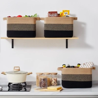 Looking for a practical and stylish way to organize your home? Our storage baskets are the perfect solution. Packed in a set of 3, available in black and brown, they are multifunctional and can be used in various rooms. Crafted from high – quality natural cotton rope, they are durable, sturdy, and soft to the touch. Safe for all family members and pets, they are great for nurseries and playrooms. Their stylish design adds a decorative element to your space. If you find creases after receiving them, simply fill them with towels or clothes, or use steaming or ironing to reshape. They are a must – have for keeping your home tidy and beautiful.